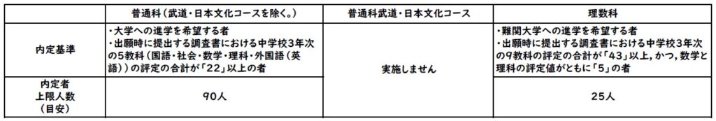 選考:在籍又は出身学校長から提出された調査書及び面接の結果を資料として選考し、内定者上限人数の範囲で合格内定者を決定します。